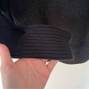 Suzy Shier Black Mock Neck Cable Knit Ribbed Button Long Sleeve Sweater