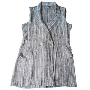 Suzy Shier Linen pinStripe Long Vest Sleeveless Waistcoat Size S
