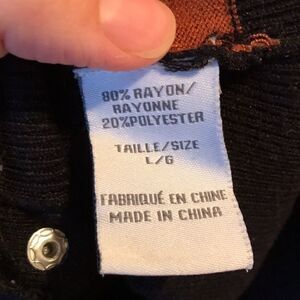 Well loved black and rust cardigan, with snap buttons. Pre loved condition.