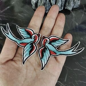 2 Piece sailor tattoo style red & blue Swallow birds Iron-on embroidered patches