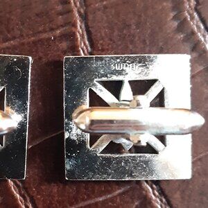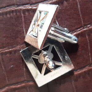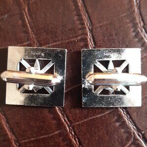 Swank Fleur De Lis Vintage Cuff Links Silver Tone ,7/8" Square