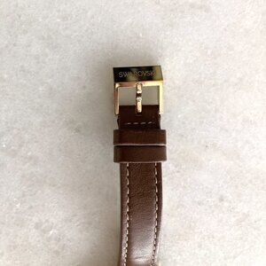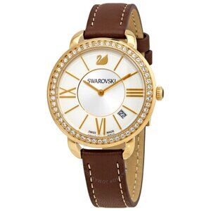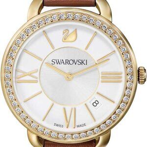 Swarovski Aila day watch, Swiss made, brown leather strap, crystals, gold tone