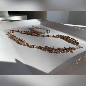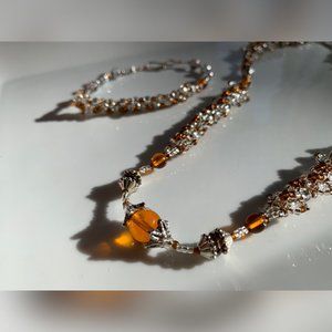 A set of orange and silver beaded & crystals handmade with a hook clasp for both necklace and bracelet. The beads & crystals are Swarovski.