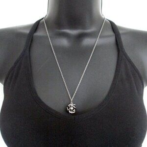 🖤🌹 Swarovski Black Rose Pendant Necklace Enamel Pave Crystal Dark Silver Tone