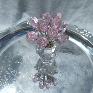 Here we have an awesome Swarovski Crystal "A Dozen Pink Roses" figurine, produced for the Swarovski "In the Secret Garden" series in the early 2000s! This beautiful sculpture was one of the only Colored Crystal pieces released for the "In the Secret Garden" series. The faceted pink lead crystal Roses are attached to silver-toned stems and were placed in the faceted clear crystal vase. This gorgeous piece was designed by Swarovski designer Gabriele Stamey.