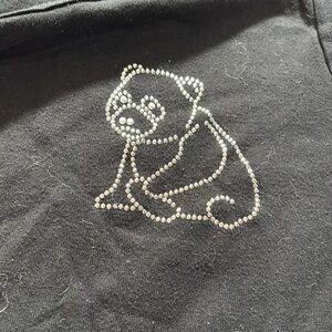 Add a touch of sparkle and whimsy to your wardrobe with this Swarovski Panda T-shirt, size Large, in great condition. Made from 100% combed cotton and pre-shrunk for lasting comfort, this black tee features a charming panda graphic outlined in genuine Swarovski crystals on the chest.