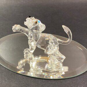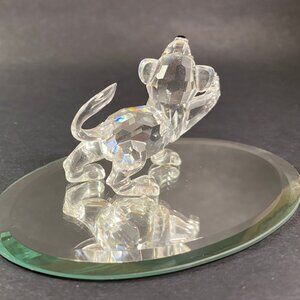 Swarovski Silver Crystal Figurine lion cub comes with display mirror- No box