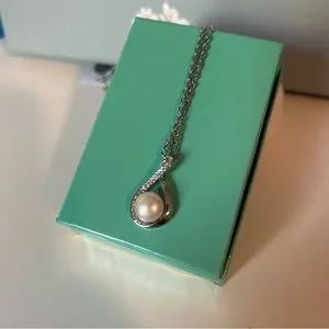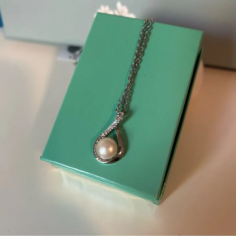 Swarovski Silver Tone Pearl Teardrop Necklace