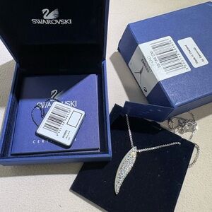 Elegant and timeless, this Swarovski necklace features a lustrous pearl set inside a crystal-accented teardrop pendant. The design combines classic sophistication with a touch of sparkle, perfect for both everyday wear and special occasions.