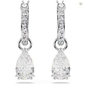 Swarovski Stilla drop earrings Pear cut, Round cut, White, Rhodium plated