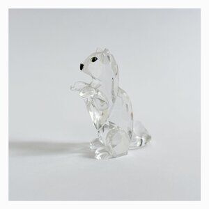 This Vintage Swarovski Crystal Kitten is standing on her hind legs and begging for a little bit of love and attention. Designed by Michael Stamey, she is from the "Pets Corner" Collection, she was Introduced in 1991 and Retired in 1995. She is made from clear crystal and has a black nose and green/black eyes. Excellent Condition, no chips, scratches or repairs. Perfect for gifting or adding to your own collection.