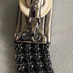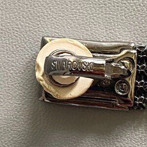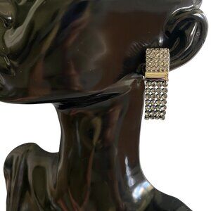 Signed Swarovski Vintage Smoky Crystal Drop Clip On Earrings. Features rectangular Sparkly & bold clip on with cascading strands of pave smoky crystals. Classy & Sexy for formal evenings. Please note one pad on earring shows some wear as pictured, the other is used also but not as noticeable. No original box will come in box pictured.