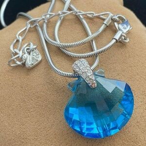 Swarovski Wonders of the Sea Eternity Blue Sea Scallop Shell Necklace & Earrings. Necklace is approximately 17 inches long. Both are in