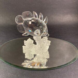 Swarovski large Crystal Butterfly Fish Figurine Clear on Reef W/ display mirror