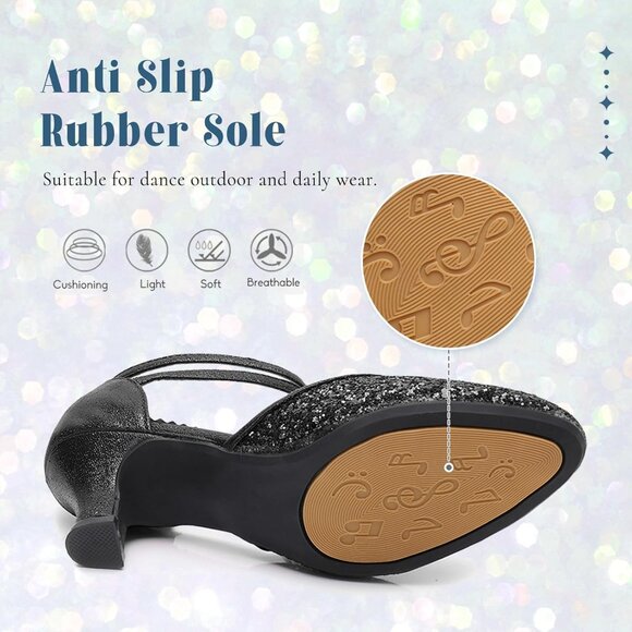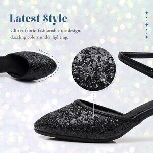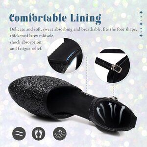 Swdzm Womens Black Ballroom Closed Toe Sequins Latin Salsa Tango Dancing Shoes