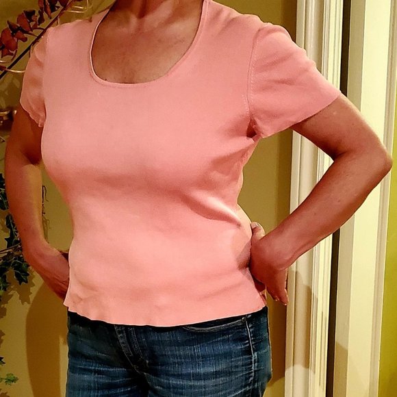 Soft Silk Nylon Lycra blend, short sleeve sweater. Size Petit M
