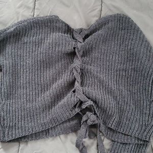 Lace up back sweater