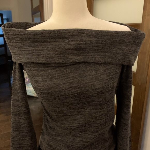 Soft grey off shoulder sweater. Looks great casual or dressed up! Fits small. Worn once!
