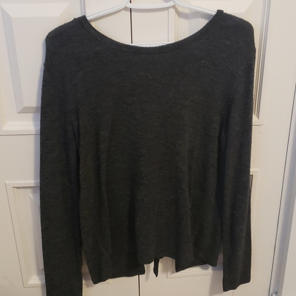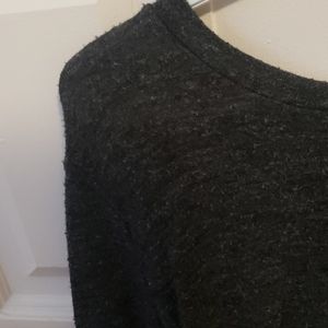 Soft and comfy. fits loose and back is really cute. dark grey/back color. no imperfections