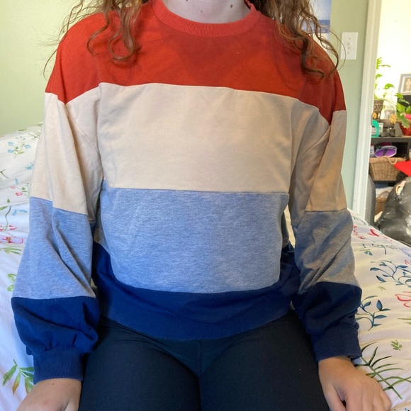shein size small sweater without tags or size tag. Trendy style. I want to point out that the white stripe is off white. Thinner material