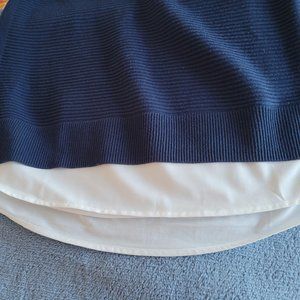 Haut en maille de couleur marine, avec jupon blanc attaché. Entretien facile.
