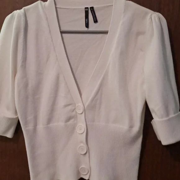 crop white sweater. tag says large but its more small to medium.