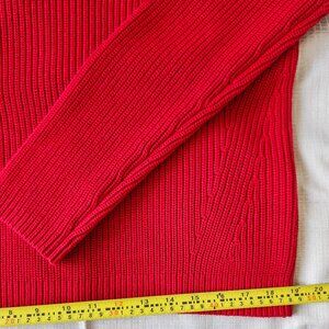 According to the label, size S may fit size M. The sleeves of the sweater are slightly lowered, it is possible that they may be a little too long for size S (the total length from the neck line to the end of the sleeve is 28,5"). The length pit to pit is 20", the length of the sweater 23".