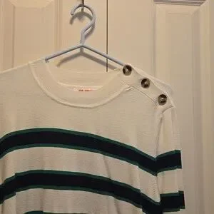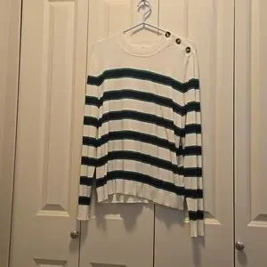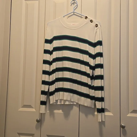Long sleeve sweater. Navy blue and green stripes. Gently used. Size XL Joe Fresh