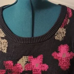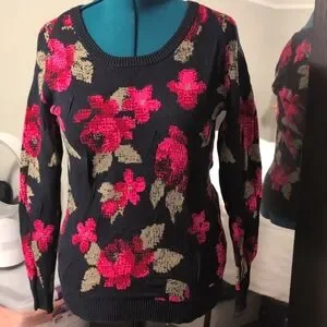 Volcom knit sweater, beautiful pink deep red flowers size M1