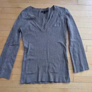 BCBGMaxAzria sweater. Light brown colour. Size medium. 15% angora, 35% wool, 50% nylon. Excellent condition. Better idea of colour in pictures.