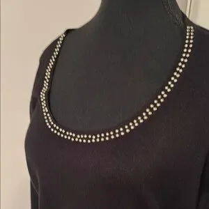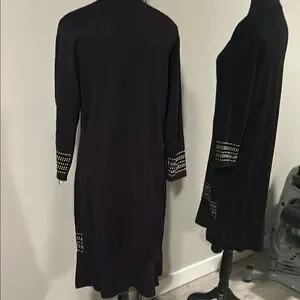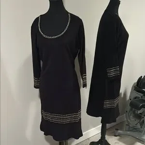 This black sweater dress features stylish studded details, perfect for any occasion. Its sleek design offers a sophisticated look.