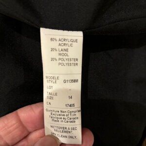 Measurements: Size 14, underarm to underarm 23.5 inches, sleeve length 26 inches, back width 17 inches, back length 30 inches