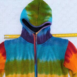 Sweater Knit Rainbow Hoodie Jacket 100% Wool Fleece Lined Women Made Nepal Sz M