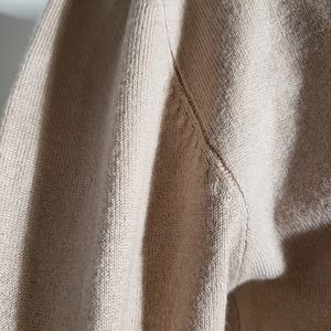 Neutral color sweater. Really fits s-m. Cozy & comfy. Wear on our off the shoulder. New.