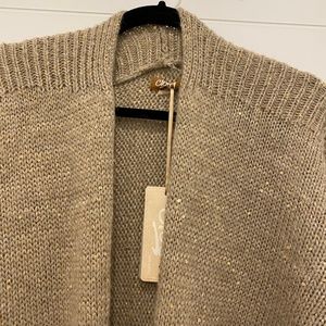 Lovely draping gold tone sweater - one size fits all. Put 8 on the listing as there was not an option for one size. New with tags.