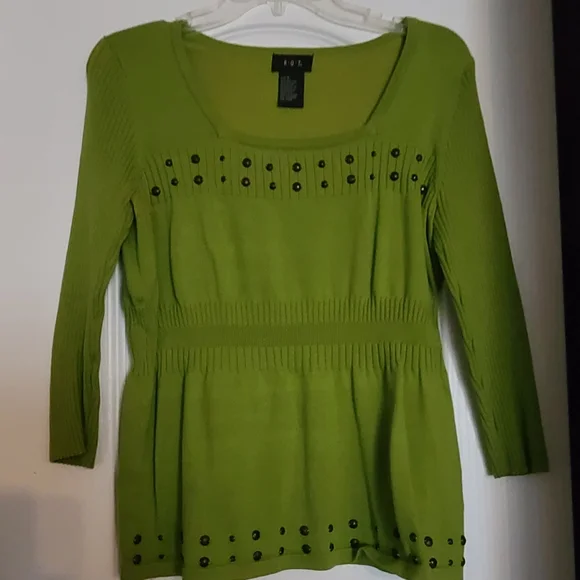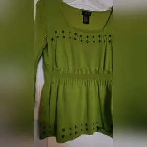 Lime green sweater top with accents. Size small. 3/4 sleeves. Excellent condition. Let me know if you have questions. Bundle to save 30%.