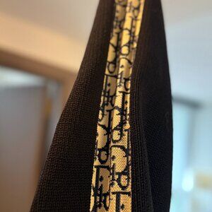 Elevate your wardrobe with this authentic Christian Dior striped sweater, a classic and effortlessly chic piece from Dior’s collection. Crafted from a luxurious wool and cashmere blend, this navy and white knit sweater features a sophisticated boat neckline and iconic Christian Dior print down the sleeves. This is 100% authentic.