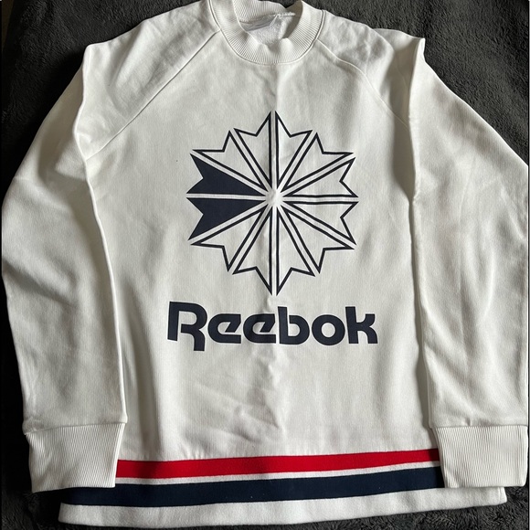 Classic Reebok white cotton sweatshirt, never worn , large , excellent condition
