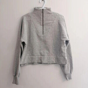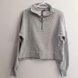 Sweaty Beatty Nestle Up Half Zip Cropped Pullover Sweatshirt in Gray Marle XS