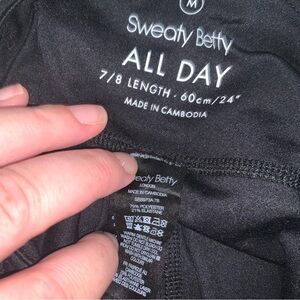 Sweaty Betty Black All Day Ruched Hem 7/8 Gym Leggings M