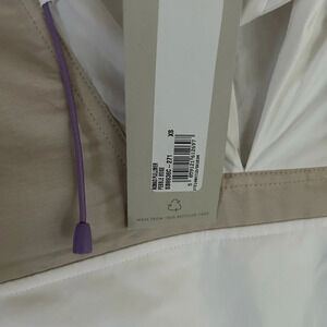 Size XS but fits baggy! fabric is amazing- variety of textures on the arms and everything beige- it’s a thicker tight linen that keeps its shape! Very cool and unique! Unique and beautiful designer