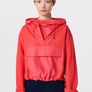 Brave the elements in this lightweight twill pullover jacket. A protective hood and drawcord hem frame this chilly-day layer.