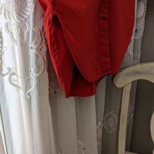 Sweet Baby Jane oversized red cotton blouse with snap on buttons, One Size