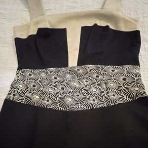 Sweet Chemise black and cream accented A line dress size 2. (Fits smaller as I am normally a size 0). Structured, A line skirt. Barely worn. Beautiful embroidered empire waist that is truly flattering on any body. Zipper in back.