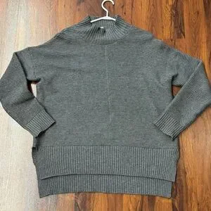 Sweet Romeo Ribbed Knit Sweater L / Grey Relaxed Pullover