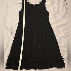 This y2k simple, yet classy, black dress is super comfortable, stretchy, and flattering. Features a playful ruffle trim on bottom of dress. Condition is excellent.