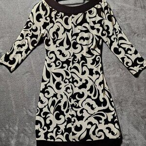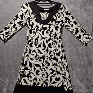 Sweet Storm Dress Women Medium Cream & Chocolate Brown 3/4 Sleeve Slip Stretchy