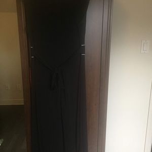 Nice classic black dress , up to the knee . Flowing material with a belt in the back .Brand new