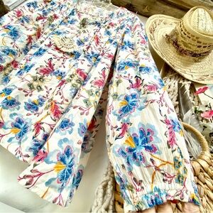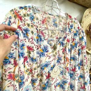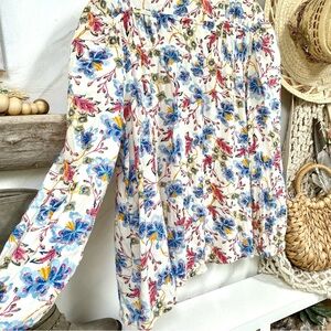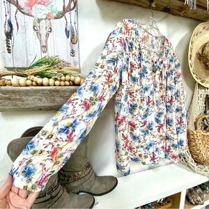 Sweet prairie floral boho blouse w cottage core/folk/peasant vibe