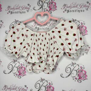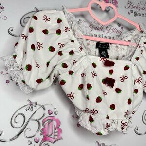 Sweet society milk maid crop top strawberries π ruffle lace puff sleeve cute